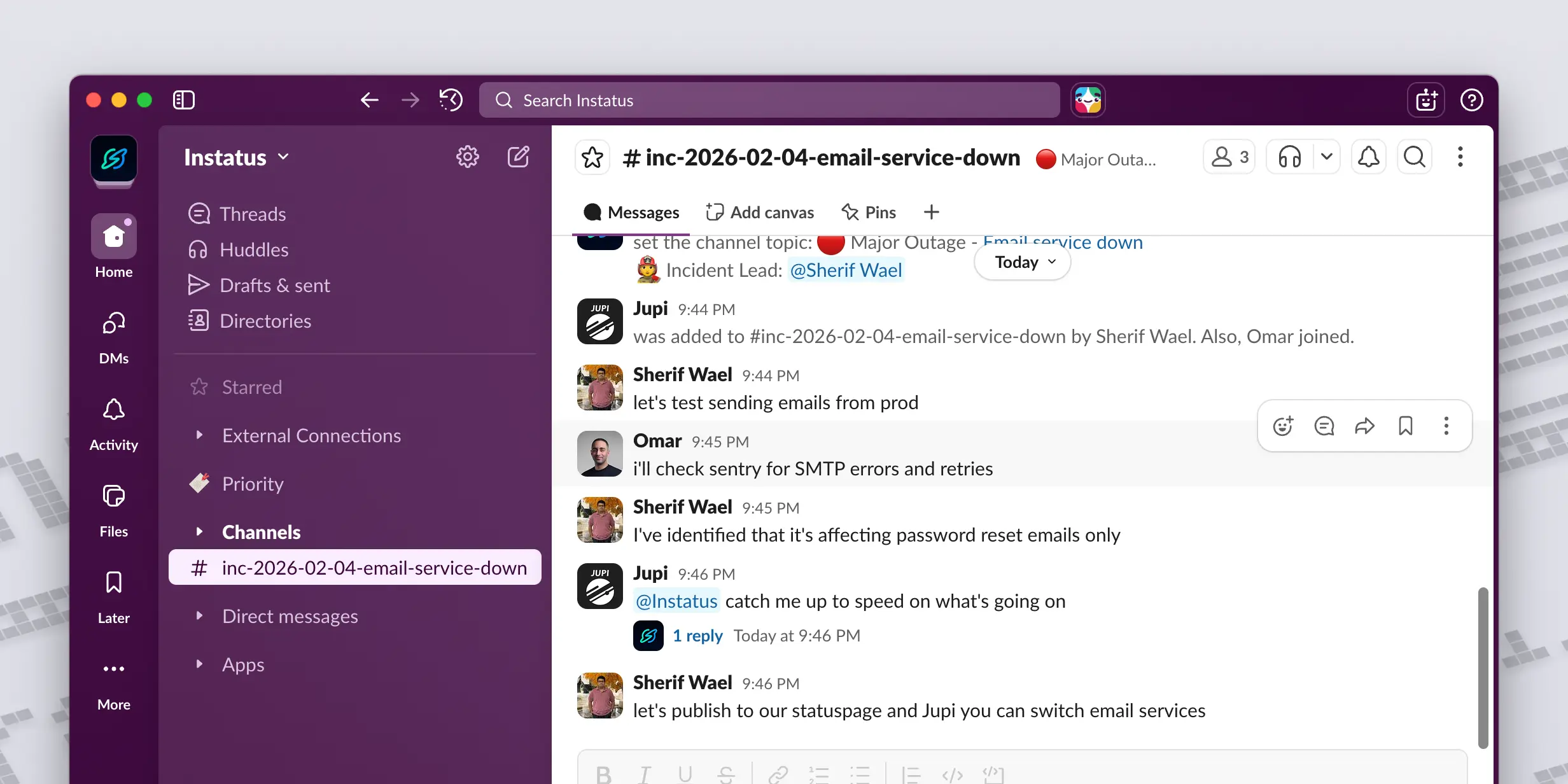 - Dedicated incident channels - Each incident now gets its own Slack channel for better organization and communication